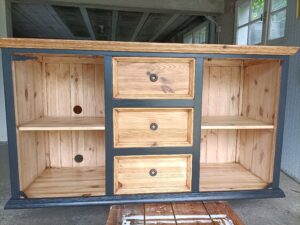 Le bois, lui, a été conservé dans toute sa splendeur. Sa chaleur intemporelle et sa noblesse en font une matière qui traverse les époques sans jamais perdre de son charme. Ce meuble, désormais modernisé, n’est pas seulement fonctionnel, mais devient aussi un élément phare de la cuisine, liant passé et présent.